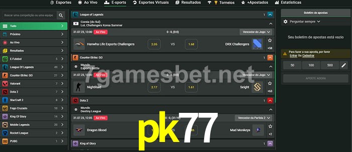 O pk77 oferece uma grande seleção de opções de apostas em e-sports com probabilidades competitivas